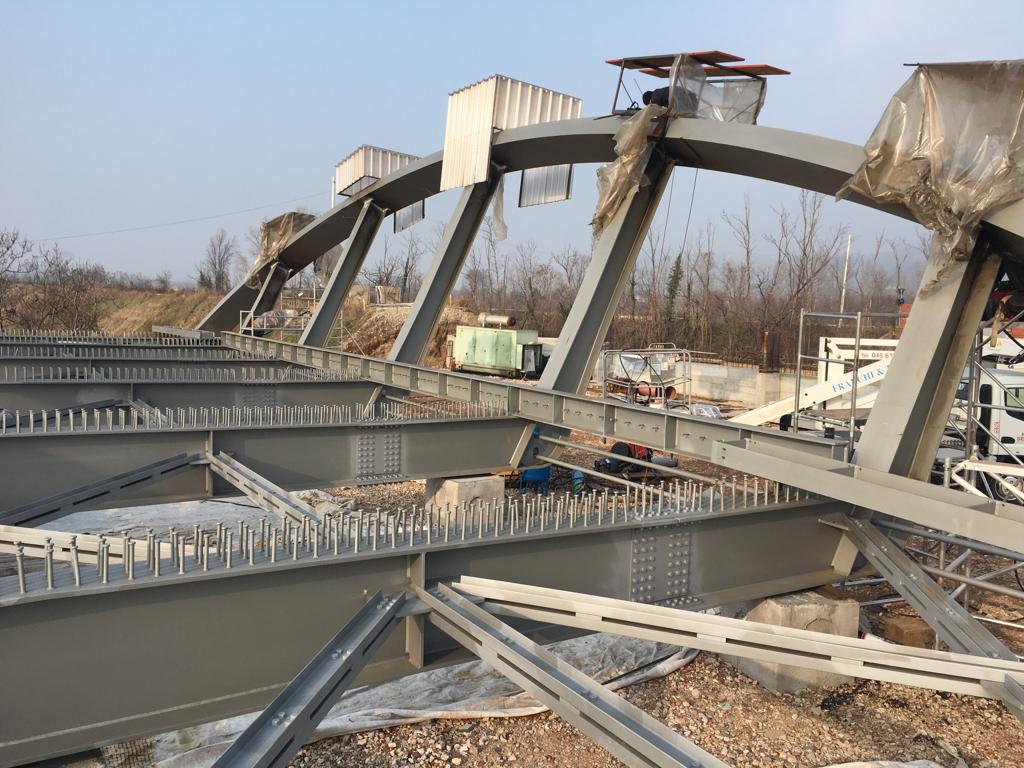 Il cantiere avrebbe dovuto chiudersi a metà marzo, ma è stata concessa una proroga di 45 giorni per permettere alla ditta che sta eseguendo i lavori (raggruppamento di imprese costituito da CGC Srl di Altavilla Vicentina e F.L. Costruzioni & Autotrasporti Srl di Brescia) di risolvere e superare alcune complicazioni tecniche. Nel dettaglio, spiegano da Vi.Abilità, è stato necessario modificare la tipologia di saldatura inizialmente prevista per i pendini di collegamento alle due grandi arcate, con conseguente nuova attività progettuale e di verifica che ha visto coinvolto anche l’Istituto Italiano di Saldatura. La stessa saldatura e verniciatura del ponte in acciaio, che è stata eseguita in cantiere, ha subito rallentamenti a causa delle basse temperature e della nebbia.