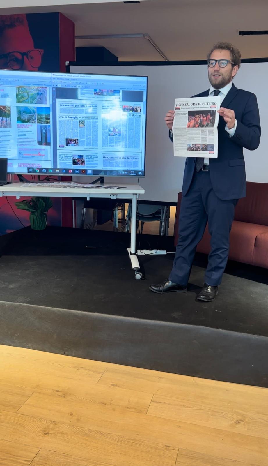 “Il sindaco uscente ha presentato due materiali elettorali nelle ultime settimane: prima il famigerato giornale del Comune, in edizione speciale pre-elettorale, che ha suscitato tanta comprensibile indignazione nei cittadini; poi pochi giorni fa il suo programma. Ecco, mi piace pensare al programma che presentiamo oggi come a una risposta su tutti i fronti: sia di stile che di contenuti. Con tre grandi differenze. Che nel nostro ci sono contenuti e non attacchi personali. Che non lo abbiamo fatto pagare a negozianti e imprese del territorio, come il foglio comunale. E che non ci sono solo slogan, promesse e rendering immaginifici ma progetti e proposte circostanziati e precisi. Nonostante io sia lo sfidante e lui il sindaco uscente, anche se a volte non sembra”. Così Giacomo Possamai, candidato sindaco per Vicenza alla presentazione del “giornale” che contiene la sintesi del programma 2023-2028. 16 pagine ricchissime di contenuti, tramite le quali i vicentini potranno approfondire i contenuti della campagna elettorale.