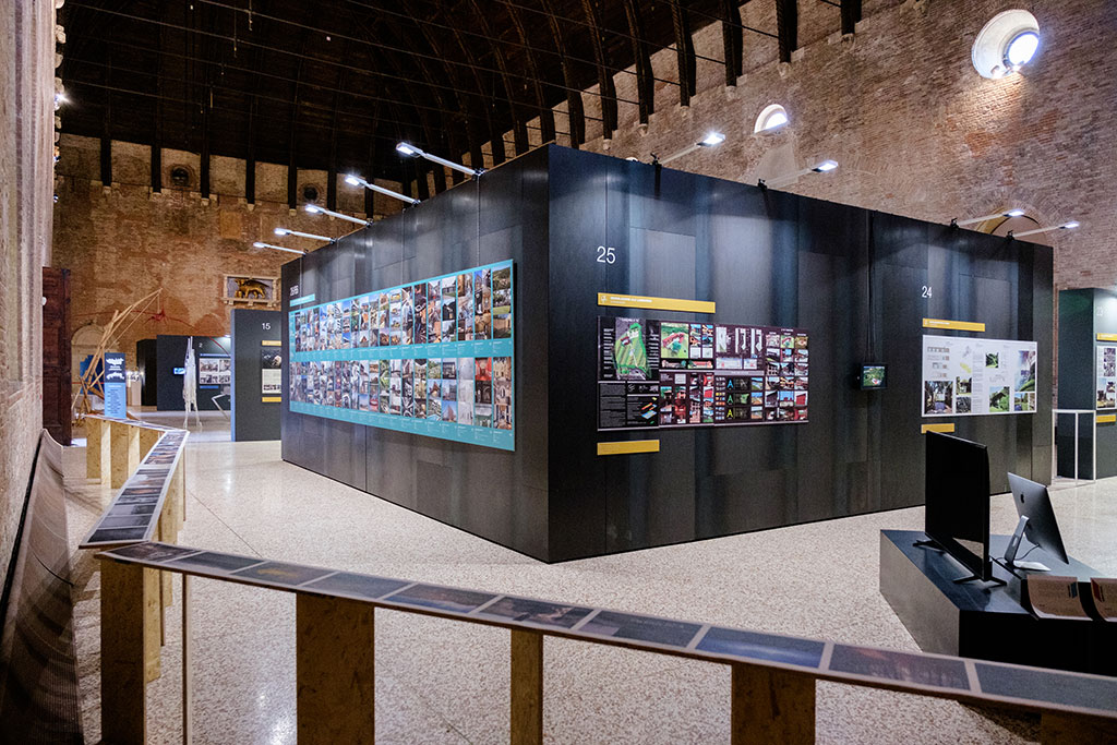 Si sviluppa in un percorso urbano trasparente, realizzato con morali in legno naturale e senza pannellature, lasciando vedere il grande salone della Basilica Palladiana. Una via diagonale principale, affiancata da percorsi laterali, conduce i visitatori a osservare i progetti selezionati attraverso finestre sospese e aperte.
