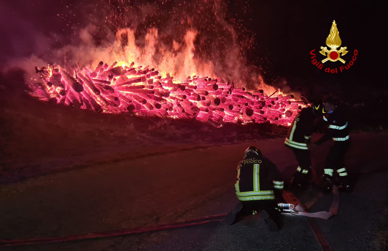 Prende fuoco catasta di legno: i pompieri spengono le fiamme