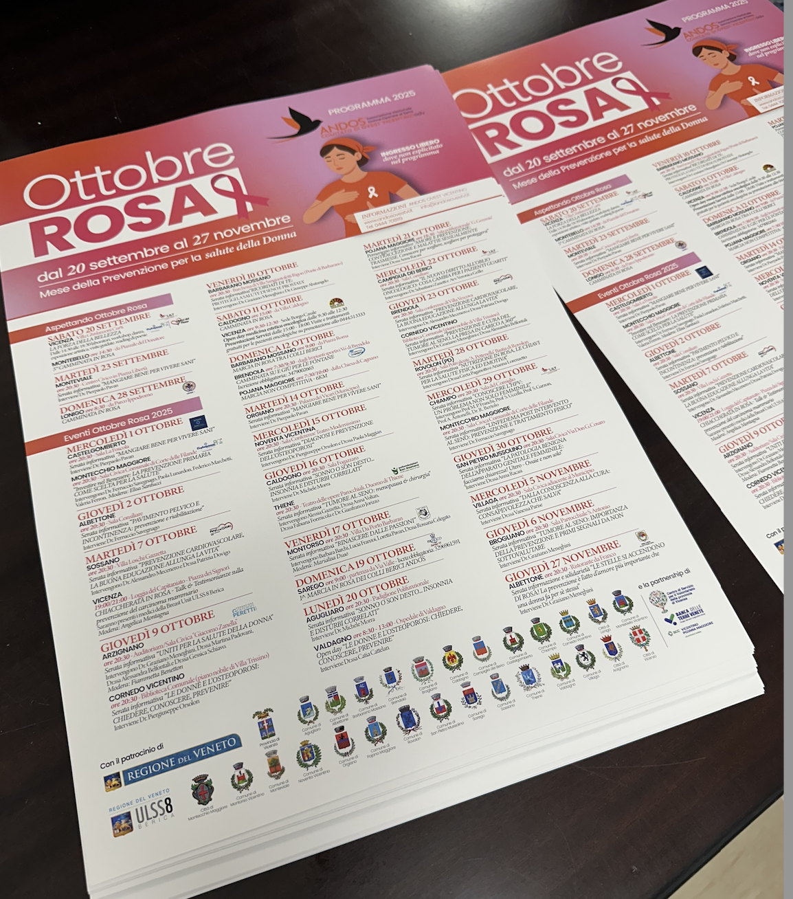 Cura, benessere, prevenzione. Sono questi i filoni principali che faranno da cornice agli oltre 30 eventi previsti nel cartellone di appuntamenti dell’ ”Ottobre Rosa 2025”. Ventotto i comuni della Provincia di Vicenza che hanno aderito patrocinando questa edizione, ai quali si aggiungono i numerosi partner operativi e logistici come Amici del 5° Piano, Amici del