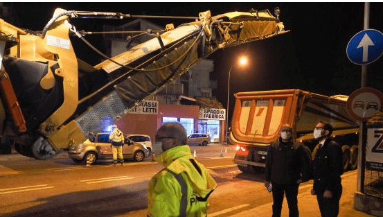 Si è conclusa a tempo di record la prima fase dei lavori di asfaltatura di strada Pasubio, iniziati venerdì sera e proseguiti per tutta la notte e nella giornata di sabato, per terminare in anticipo sulla tabella di marcia prima dell’arrivo del maltempo di domenica.
