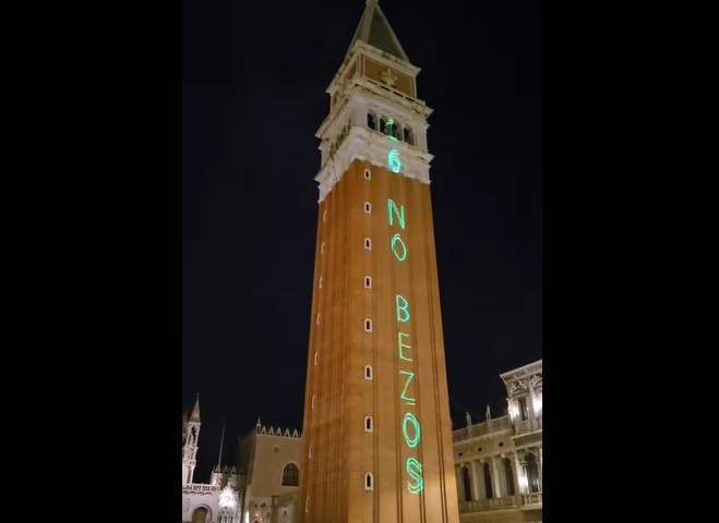 Protesta contro Jeff Bezos a Venezia: laser sul Campanile di San Marco e corteo in arrivo | TViWeb Protesta contro Jeff Bezos a Venezia: laser sul Campanile di San Marco e corteo in arrivo | TViWeb