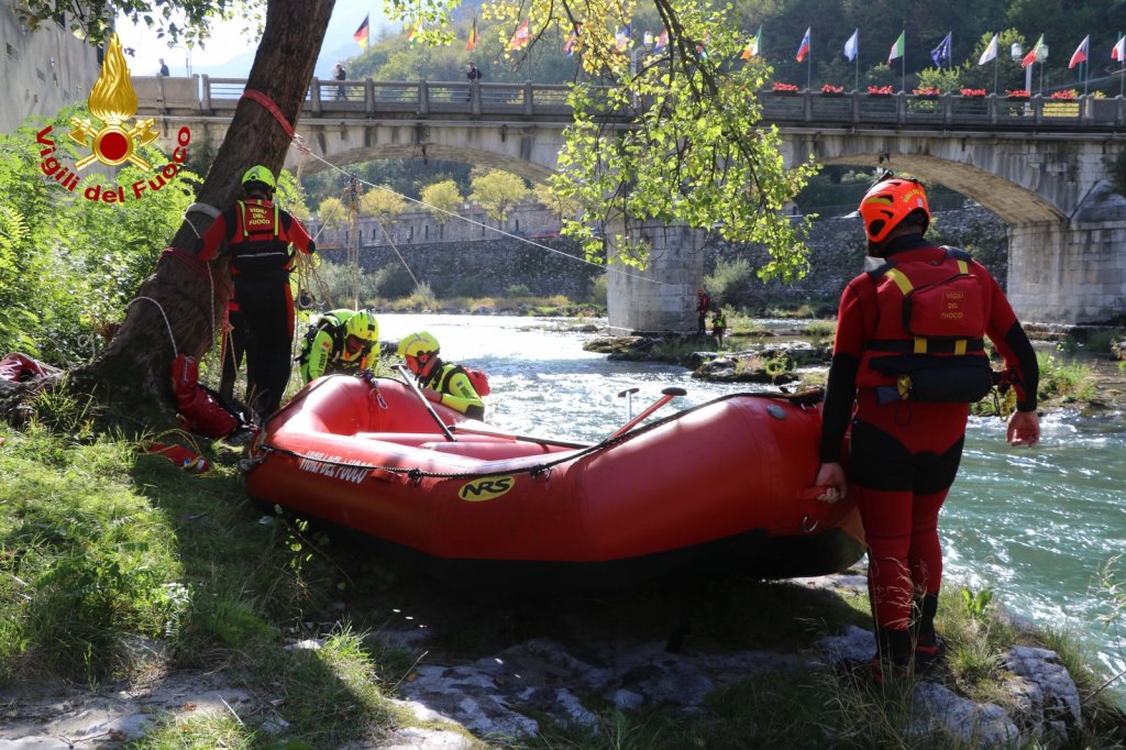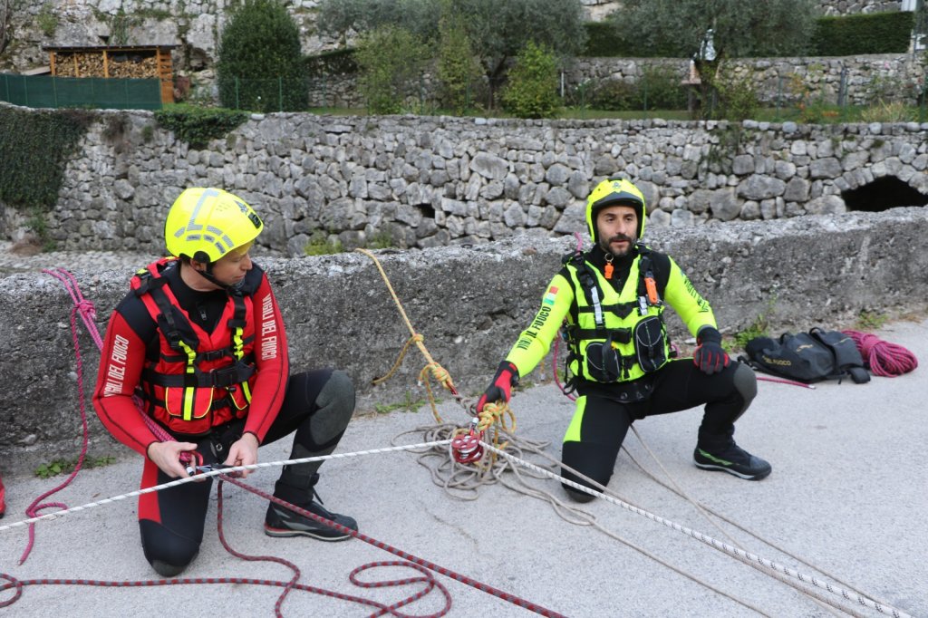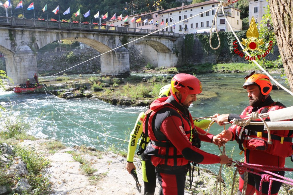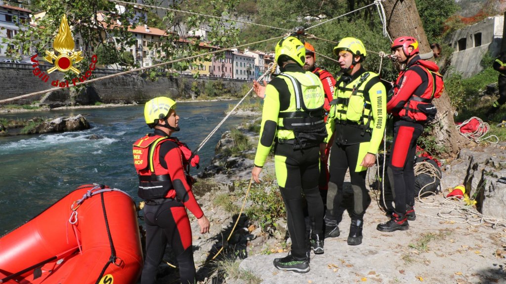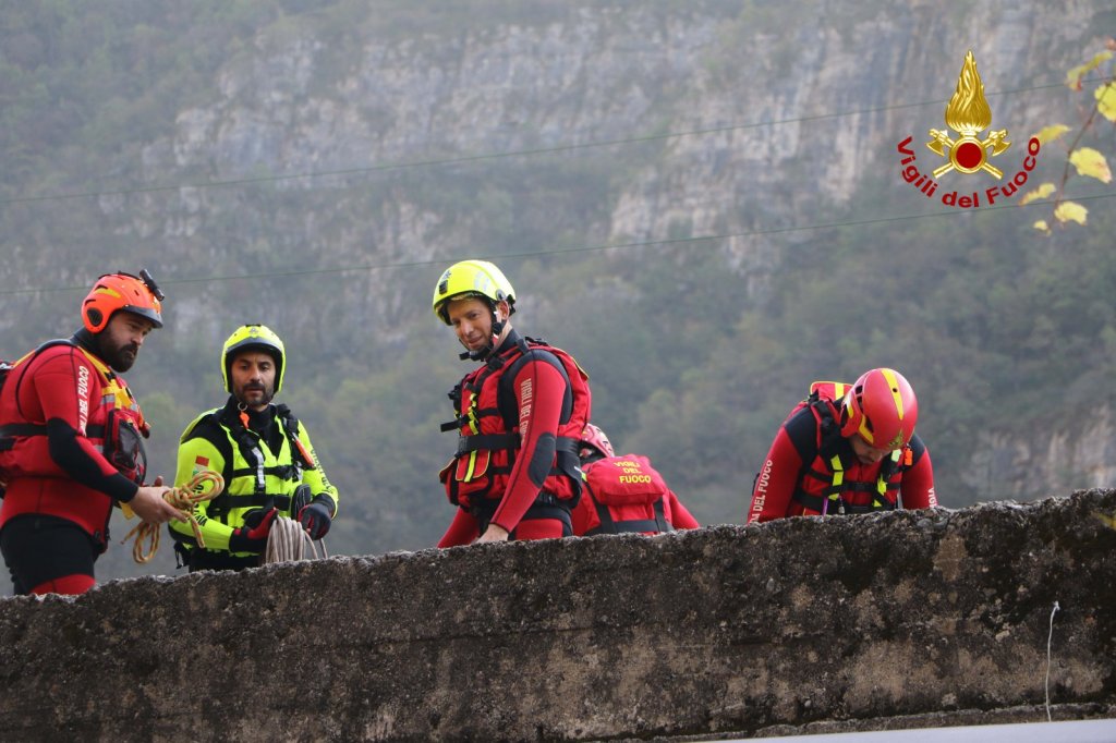 Le squadre dei Vigili del fuoco in azione oggi e domani in manovre di salvataggio in acqua: come il recupero di un pericolante alla base del ponte e alcuni soccorsi in acqua.