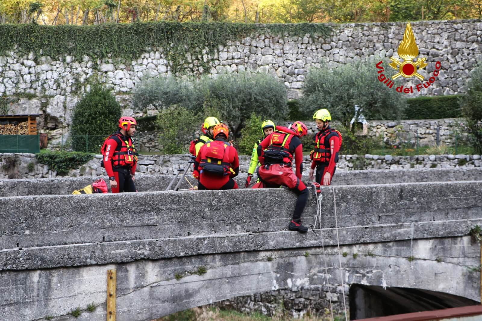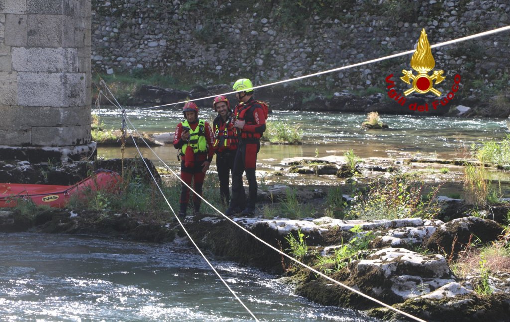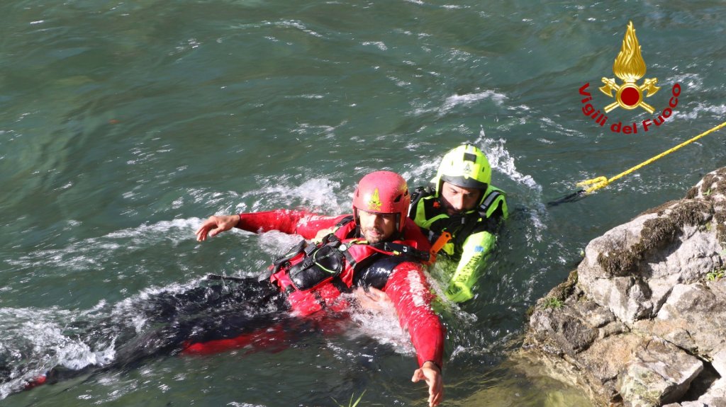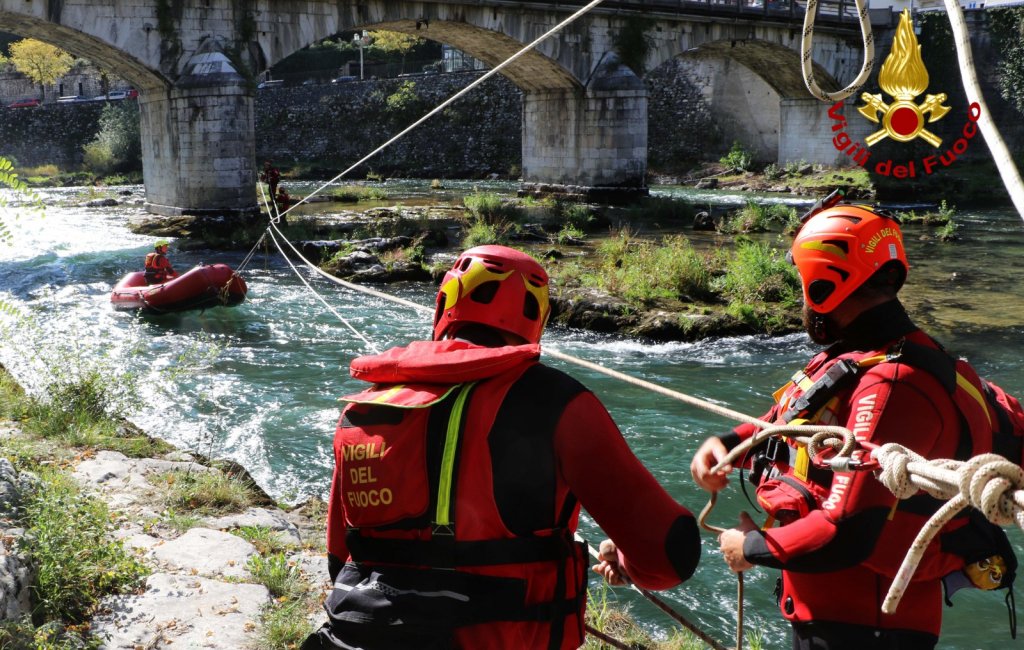 Le squadre dei Vigili del fuoco in azione oggi e domani in manovre di salvataggio in acqua: come il recupero di un pericolante alla base del ponte e alcuni soccorsi in acqua.
