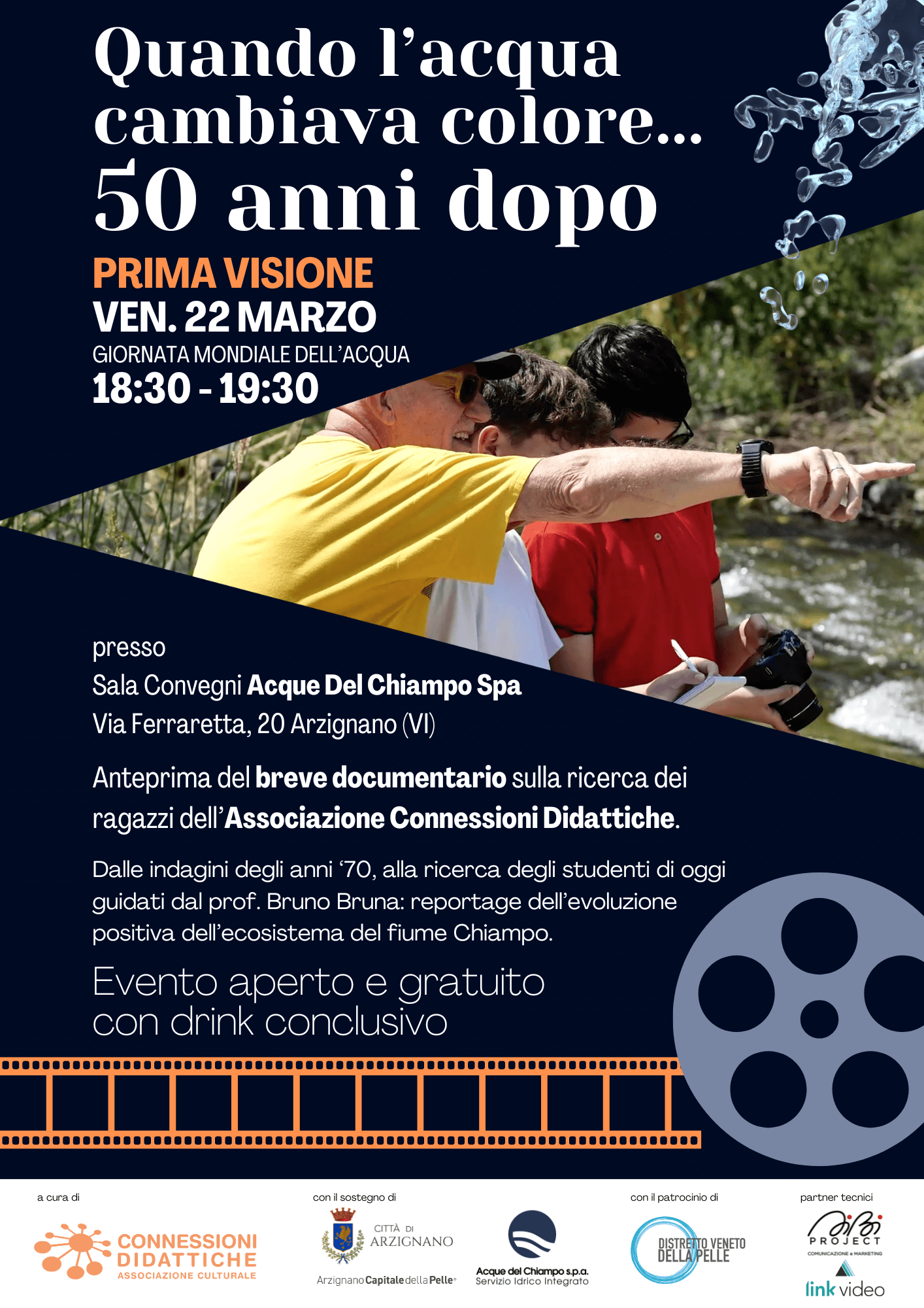 Il reportage dello studio ambientale realizzato dagli studenti dell’Associazione Culturale Connessioni Didattiche, guidati dal professor Bruno Bruna, presidente e docente dell’Associazione, sarà presentato in anteprima nell’evento organizzato in occasione della Giornata Mondiale dell’Acqua il prossimo venerdì 22 marzo 2024 alle ore 18:30 presso la Sala Convegni di Acque Del Chiampo Spa,