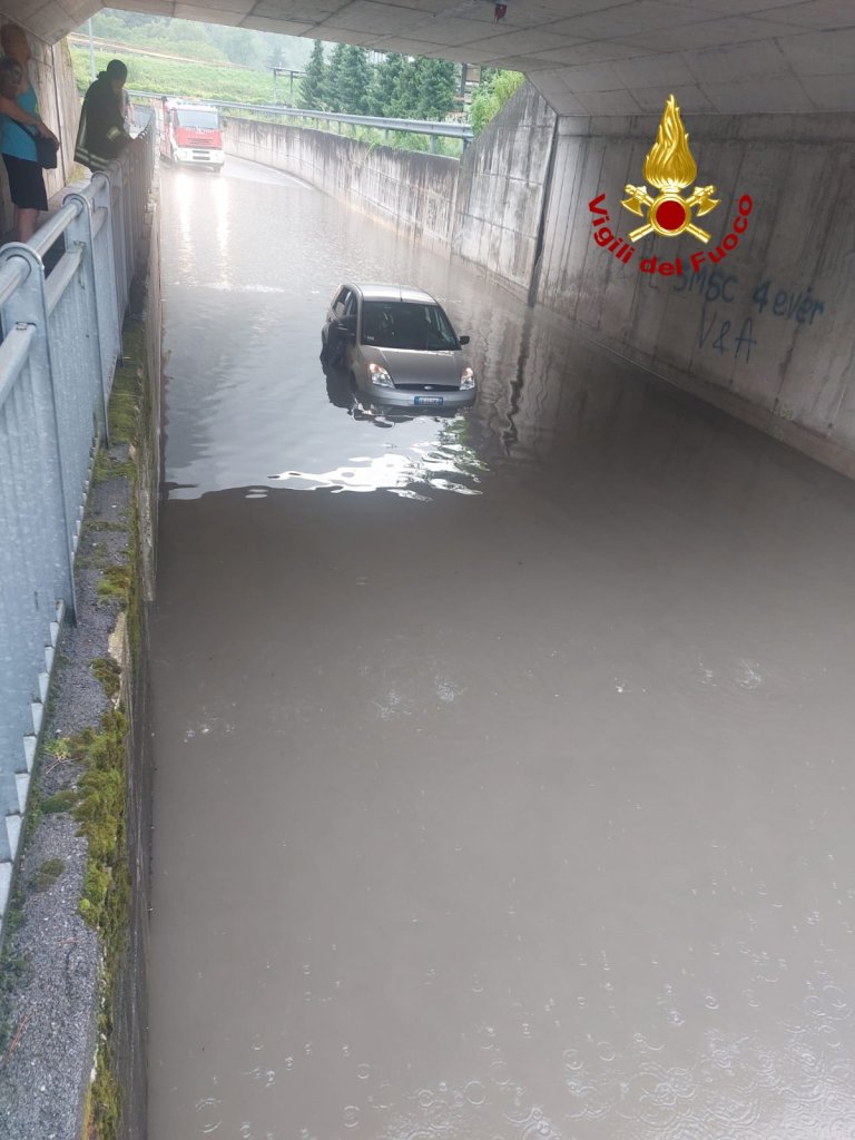 Martedì alle 20:00 circa i vigili del fuoco sono intervenuti in Via Circonvallazione incrocio via Broli a Cismon del Grappa nel comune di Valbrenta per soccorrere un’automobilista finita quasi sommersa con il mezzo in un sottopassaggio, che si è riempito di acqua per un violento temporale. I vigili del fuoco arrivati da Bassano del Grappa hanno recuperato l’auto, mentre la donna è riuscita in qualche modo, prima dell’arrivo dei soccorsi, a uscire dall’auto e mettersi in salvo. Le operazioni dell’auto sono terminate dopo un’ora circa.