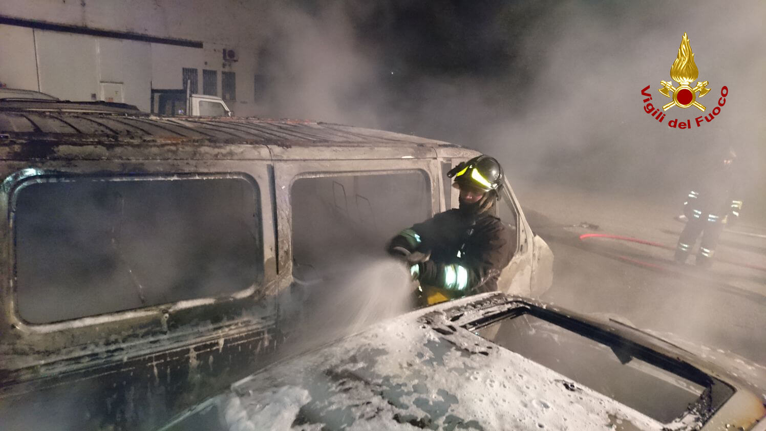 Quattro mezzi a fuoco, tre squadre di vigili del fuoco al lavoro (FOTO)