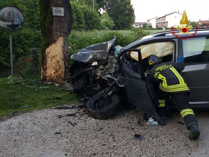 Alle ore 20.00 i vigili del fuoco sono intervenuti in via Stradone a Quinto Vicentino per un’auto andata a sbattere conto un gelso dopo la perdita di controllo da parte del conducente: due i feriti. I pompieri di Vicenza hanno messo in sicurezza la Volkswaghen Touran e collaborato con il personale del suem 118 nel soccorrere i due uomini rimasti coinvolti nell’incidente. I due feriti sono stati portati in ambulanza in ospedale. Le operazioni di soccorso sono terminate dopo circa un’ora e mezza.