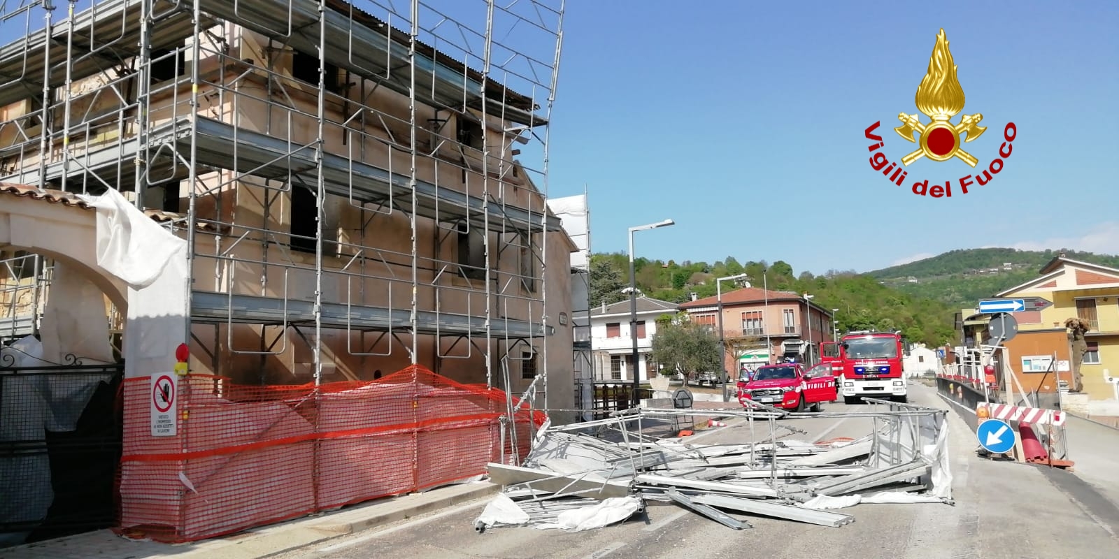 Raffiche di vento e danni nel Vicentino – A Grancona cade impalcatura Casa Zuccante