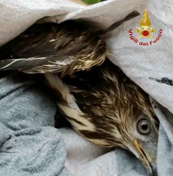 Rapace incastrato nel filo spinato salvato dai pompieri (FOTO)