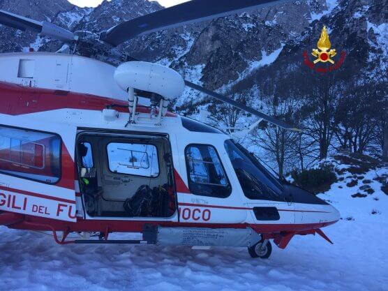 Un escursionista bloccato dall’impraticabilità del vaio ghiacciato è stato salvato dall’equipaggio di volo di Drago 84 dei vigili del fuoco nel primo pomeriggio di oggi a 100 metri della sommità del Monte Zevola, sulle piccole dolomiti nel territorio di Recoaro Terme. Il giovane era partito per raggiungere la sommità, quando a causa della neve ghiacciata trovata lungo il vaio ha deviato dal sentiero, non riuscendo però né a proseguire né a rientrare per la pericolosità del luogo, rimanendo bloccato a quota 1850. Il 26 enne miranese ha dato l’allarme con il cellulare riuscendo a dare la propria posizione agli operatori del 115. Una volta individuato un elisoccorritore si è calato, raggiungendo l’escursionista, che è stato verricellato a bordo dell’elicottero per essere portato in salvo. Il miranese 26 enne è stato sbarcato presso il rifugio Battisti dove era già presente una squadra del soccorso alpino che ha portato il giovane a valle.