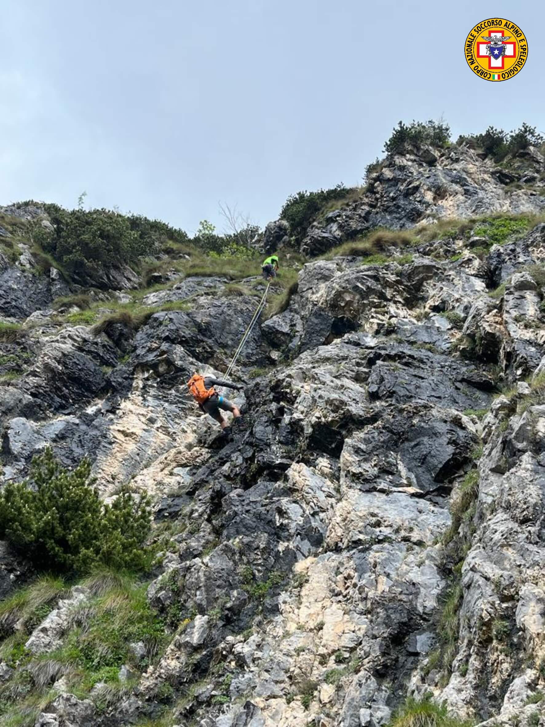 Dopo avergli prestato le prime cure e avere approntato un sistema di immobilizzazione della spalla, i soccorritori hanno calato il giovane alla base della parete. Impossibile pensare nelle sue condizioni di poterlo portare oltre, il ragazzo è stato recuperato dall’elicottero di Verona emergenza, sopraggiunto nel frattempo, che lo ha issato a bordo con un verricello per poi accompagnarlo all’ospedale di Valdagno. L’amico ha proseguito assieme alle due squadre e al primo gruppo di escursionisti in direzione del Battisti.
