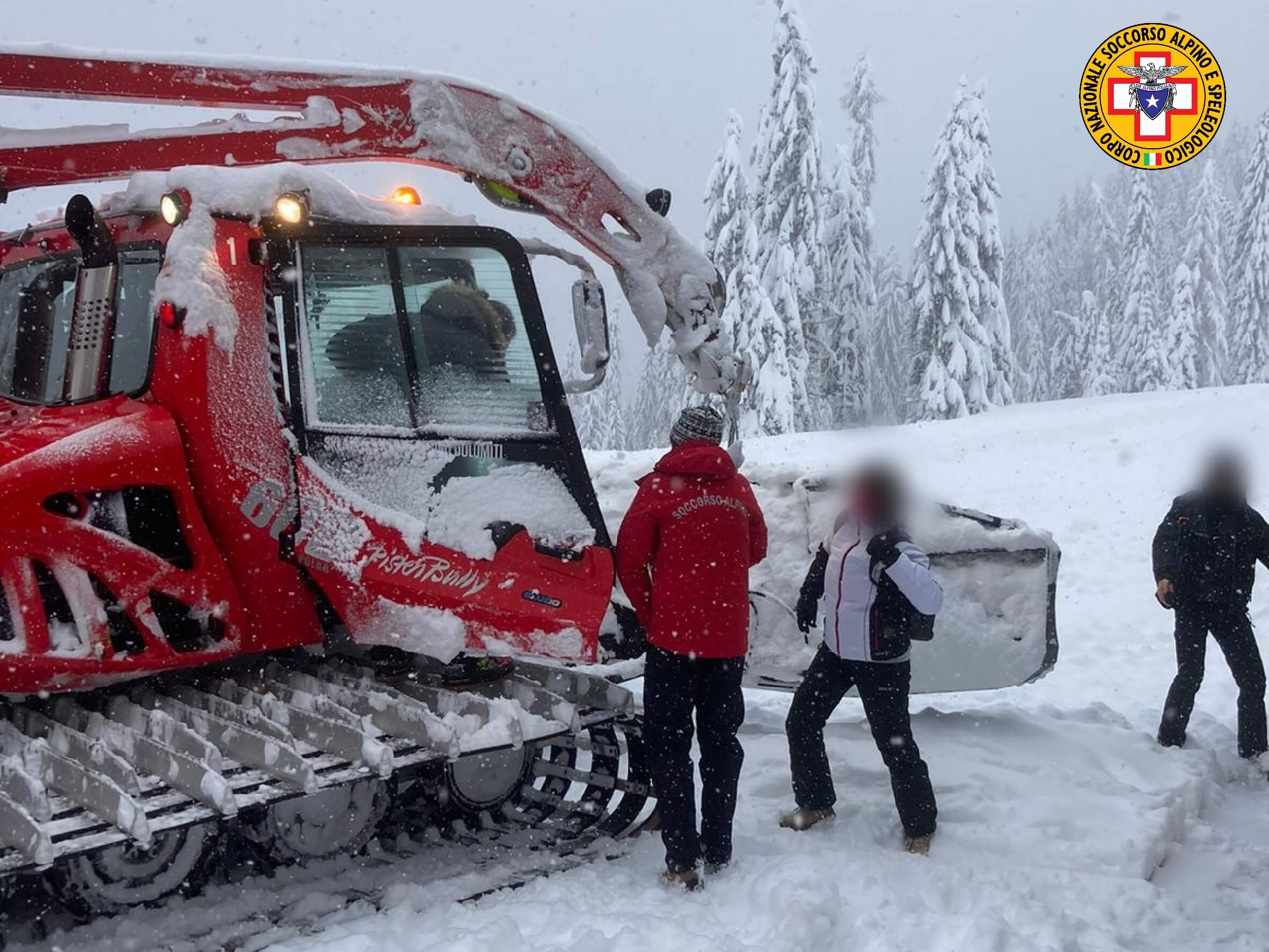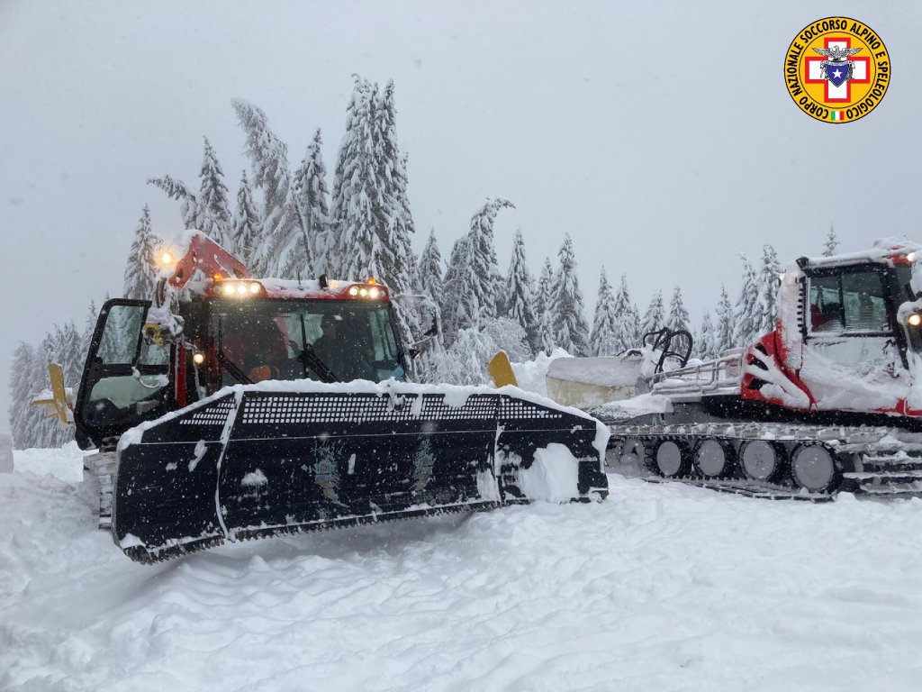 Sono state recuperate questa mattina nove persone rimaste isolate dalla neve sul Pian della Sussistenza, sopra Passo San Pellegrino. Ieri era scattato l’allarme, lanciato dal gestore del Residence che si trovava bloccato da tre giorni con sei ospiti, tra i quali un bambino, di Marcon (VE), e di Falzé di Piave (TV), ed era terminato il carburante del gruppo elettrogeno. In serata il Soccorso alpino della Val Biois era inoltre stato attivato per una coppia isolata con il proprio cane a Baita Vescovado, sempre Pian della Sussistenza. Questa mattina tre gatti delle nevi della Società impianti Ski Area San Pellegrino, sono riusciti a salire da Falcade, hanno raggiunto il Residence e in due viaggi hanno caricato a bordo gli occupanti per trasportarli in località Caverson, dove attendevano il Soccorso alpino della Val Biois e i Vigili del fuoco per accompagnarli a Caviola. Uno dei gatti si è poi recato alla baita in aiuto della coppia e del loro cane, per poi affidarli ai soccorritori sempre in attesa al Caverson.Il Soccorso alpino della Val Fiorentina si sta muovendo dal Passo Falzarego verso Passo Giau, non potendo salire direttamente per il rischio valanghe, poiché ci sono alcune persone bloccate dentro un albergo e un uomo isolato in una baita. Questa mattina, su richiesta dell’Arpav e della Sala operativa regionale, il Soccorso alpino ha inoltre effettuato delle verifiche dei siti valanghivi e dei versanti percorsi da Vaia nella zona di Rocca Pietore e Livinallongo del Col di Lana, mediante il sorvolo dei droni, per registrare dati oggettivi delle condizioni e monitorarne l’evoluzione. Tutte le Stazioni del Soccorso alpino dei comuni in cui sono in corso le eccezionali nevicate sono a disposizione delle centrali operative per questa attività.