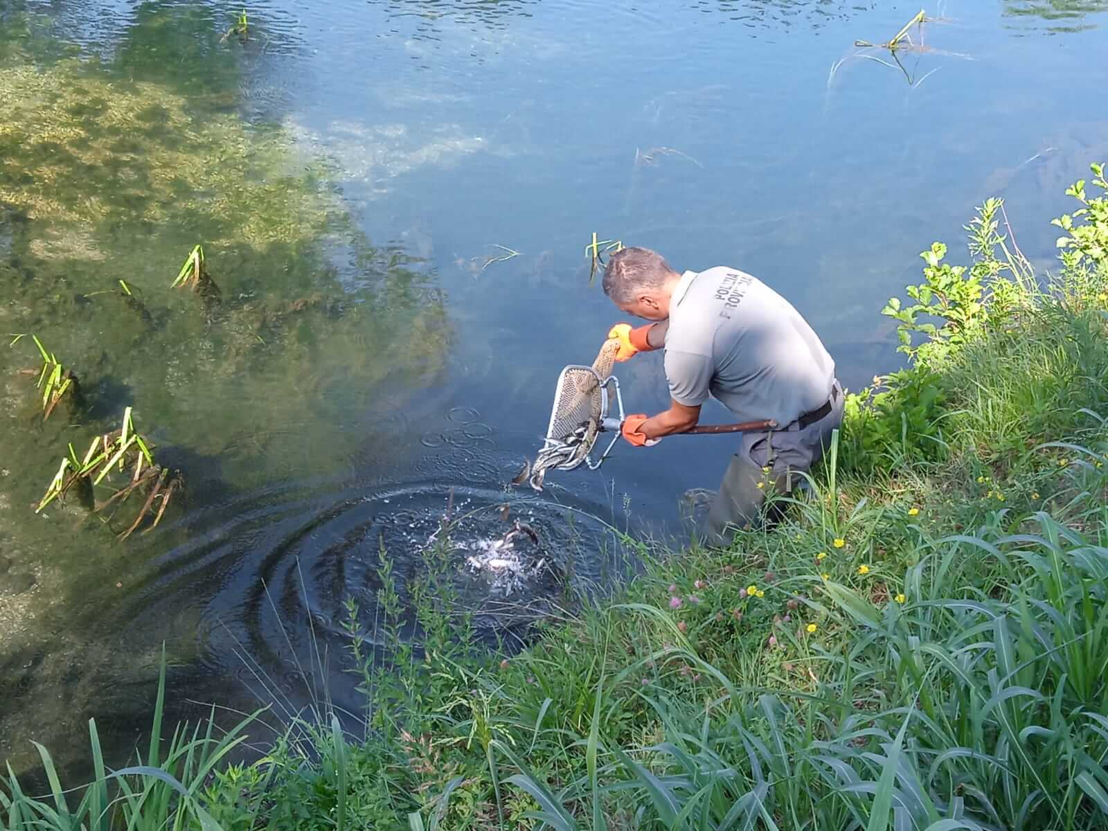 Questa mattina la polizia provinciale ha eseguito l’ennesimo recupero ittico di questa torrida estate: 100 chili di pesce, perlopiù cavedani, prelevati dal torrente Poscola a Castelgomberto e rilasciati nel fiume Retrone a Creazzo.