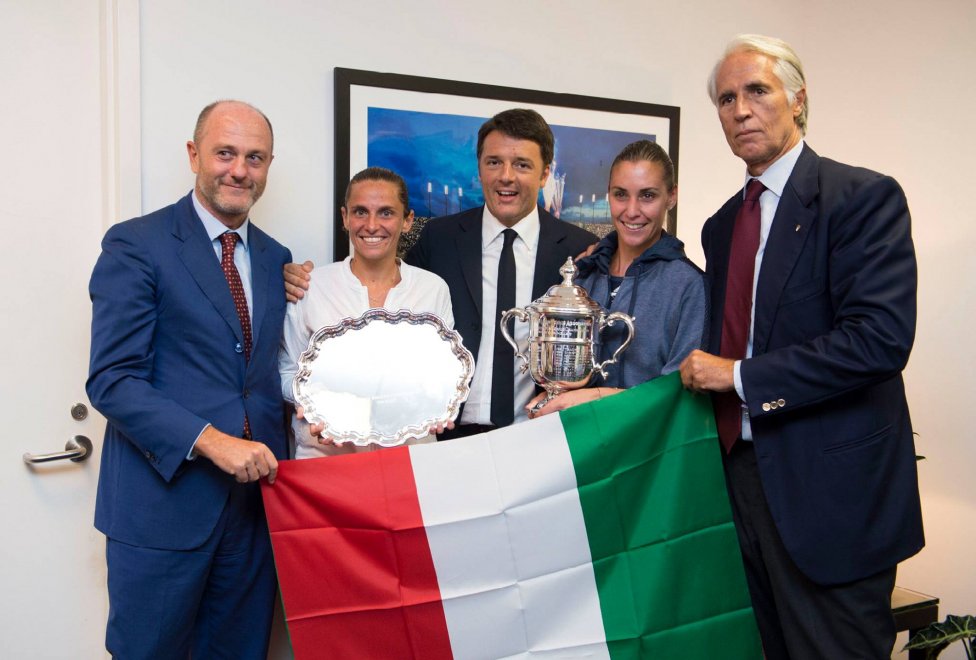 Va poi detto che l’impresa compiuta Flavia, che poi ha vinto la partita, e Roberta è stata davvero epica e straordinaria, perché hanno battuto in semifinale le prime due giocatrici al mondo e perché insieme hanno portato lo sport italiano al centro dell’attenzione mondiale, mentre in Spagna Fabio Aru andava a conquistare la maglia rossa di leader della Vuelta di Spagna per apprestarsi a vincerla nella passerella dell’ultima tappa (anche su questo successo non è mancato il tweet celebrativo di Renzi).