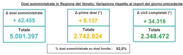 Ieri in Veneto sono state somministrate 42.455 dosi di vaccino.