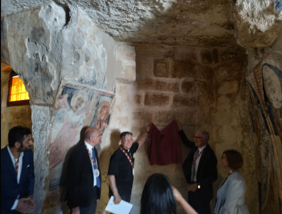 La consegna ufficiale degli affreschi restaurati è avvenuta questa mattina all’interno della Chiesa Santa Maria de Idris, da cui si accede per la chiesa rupestre San Giovanni in Monterrone.