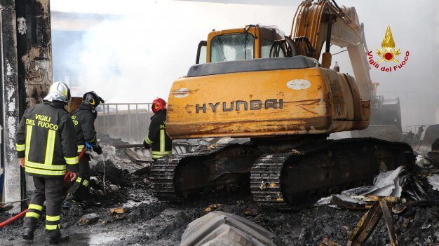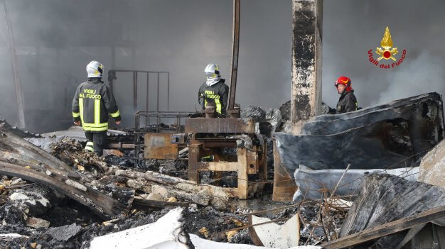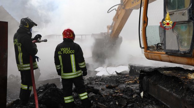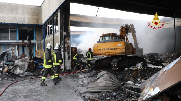 Proseguono le operazioni dei vigili del fuoco per il completo spegnimento di tutti i focolai dell’incendio divampato lunedì all’Euganea Pannelli, nella zona industriale di Campiglia dei Berici, che ha completamente distrutto un capannone di circa 3000 mq. Da questa mattina le operazioni dei pompieri sono agevolate da un escavatore cingolato, che dopo attenta valutazione sta operando per la rimozione del materiale all’interno dell’edificio per dare modo alle squadre di spegnere le fiamme ancora attive sotto le macerie. In corso il sopralluogo di tecnici e personale dell’ufficio di polizia giudiziaria dei vigili del fuoco del comando berico per stabilire le cause, le quali hanno innescato il rogo dell’azienda che produceva pannelli isolanti multistrato. Le operazioni di soccorso dei vigili del fuoco che vedono impegnati al momento una dozzina di operatori, procederanno fino al completo spegnimento di tutti i focolai. Nel frattempo, nei paese vicini come Noventa, le ordinanze dei Sindaci avvisano tutti i cittadini di porre attenzione nel mangiare frutta e ortaggi locali: “A seguito dell’incendio presso la ditta Euganea Pannelli di Campiglia dei Berici, l’ULSS n. 8 Berica, raccomanda alla cittadinanza che la frutta e gli ortaggi coltivati in ambito locale siano consumati solo dopo accurato lavaggio”.