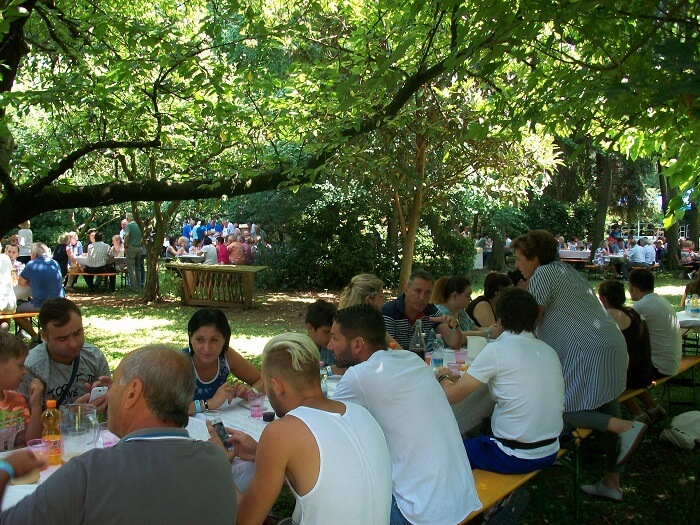 Teatro dei festeggiamenti è stato, per il terzo anno consecutivo, il parco del Caseificio Urbano Castellan a Travettore di Rosà. Qui una cinquantina di persone si sono date da fare per allestire le tavole, cuocere i cibi (tutti offerti dagli sponsor) e servire i commensali. A farla da padrone, nel menù, sono stati i 384 chilogrammi di carne di sorana cotta allo spiedo per 26 ore.
