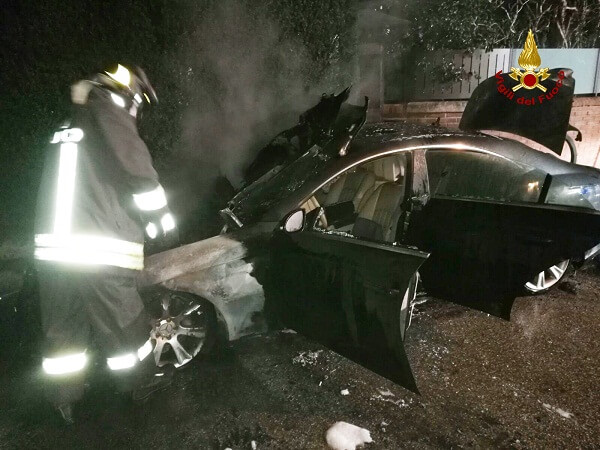 La notte scorsa alle ore 23.30, i vigili del fuoco sono intervenuti in via Quartiere Cremona a Rosà per l’incendio di un’automobile. I pompieri di Bassano hanno spento le fiamme di una Mercedes CLS, parcheggiata lungo la strada, evitando l’estensione dell’incendio a una vicina abitazione. Le operazioni di spegnimento e messa in sicurezza del luogo sono terminate dopo circa due ore. Le cause dell’incendio sono al vaglio dei tecnici dei vigili del fuoco e dei carabinieri.
