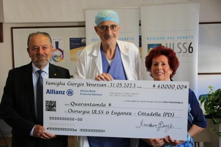 La consegna dell’assegno è avvenuta ieri nella sala riunioni della Direzione medica, alla presenza del direttore generale dell’Ulss 6 Euganea Paolo Fortuna, dell’assessore alla sanità e alle politiche sociosanitarie della Regione Veneto Manuela Lanzarin, del direttore dell’Uoc Chirurgia Generale Valentino Fiscon e dello stesso Venezian.