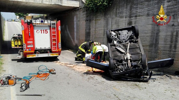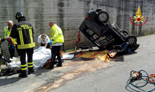 ROSA’ Alle ore 12.30, i vigili del fuoco sono intervenuti in via Monsignor Caron a Rosà per un’auto caduta dalla superstrada sulla strada sottostante: un ferito. I pompieri di Bassano hanno messo in sicurezza l’auto rovesciata e dopo averla stabilizzata con dei puntelli telescopici, hanno estratto l’autista romanese 62 enne, rimasto incastrato nell’abitacolo. Il ferito è stato preso in cura dal personale del suem 118 e portato in ospedale. Sul posto i carabinieri di Rosà per ricostruire la dinamica del sinistro. Le operazioni di soccorso sono terminate dopo circa un’ora.