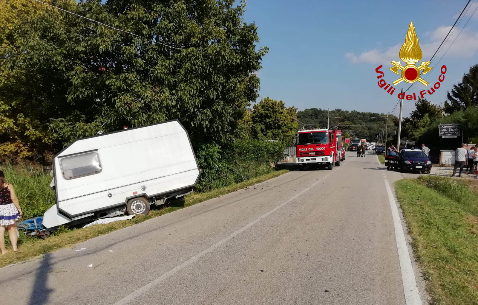 Poco dopo le 15:30, i vigili del fuoco sono intervenuti lungo la SP22 Calderina a Gambellara per una roulotte staccatasi dal gancio traino di un camper, che ha investito due giovani studenti delle superiori i quali stavano camminando lungo il ciglio stradale e sono rimasti entrambi feriti. All’arrivo dei vigili del fuoco di Lonigo i due studenti erano già stati presi in cura dal personale del SUEM per essere trasportati in ospedale: uno in elicottero e l’altro in ambulanza. La polizia locale e i carabinieri hanno deviato il traffico ed eseguito i rilievi dell’incidente per determinare le cause della rottura meccanica, che ha provocato il grave incidente. Le operazioni di soccorso dei vigili del fuoco sono terminate dopo circa un’ora e mezza.
