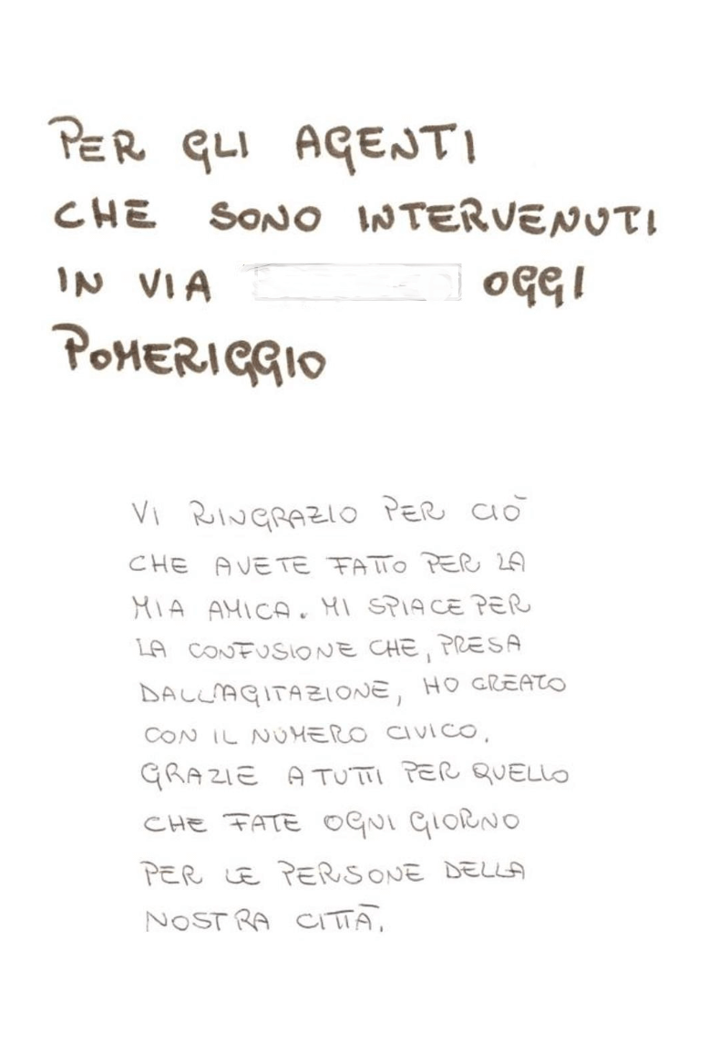 L’amica che avevo segnalato il grave fatto ha poi recapitato alla Questura un caloroso messaggio di ringraziamento.