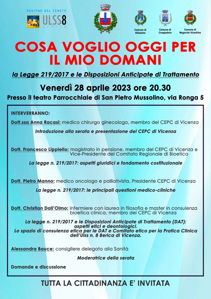 SAN PIETRO MUSSOLINO – Cosa fare quando non saremo più in grado di intendere e di volere? Convegno venerdì sera
