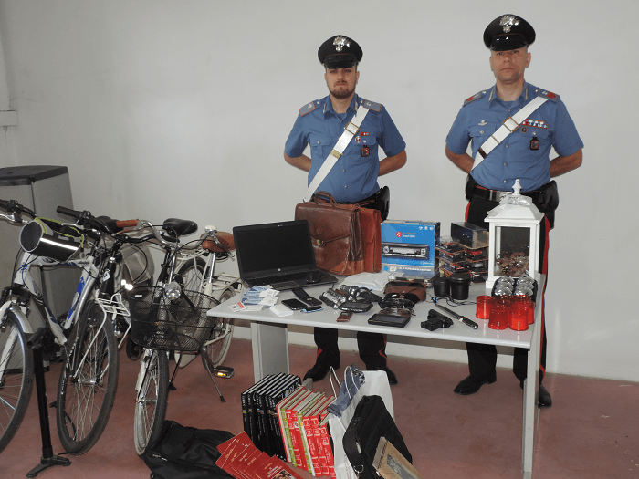 I Carabinieri riuscivano quindi a completare quanto loro delegato dall’Autorità Giudiziaria, rinvenendo nell’abitazione dell’uomo diverso materiale provento di furto, fra cui 3 biciclette, 1 pc portatile, 2 navigatori satellitari e una pistola giocattolo: per questo motivo è scattata a carico del soggetto anche la denuncia per ricettazione.