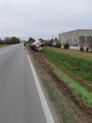 Alle 11:25 di stamattina, D.C., uomo 38enne di Piazzola sul Brenta, alla guida di autoarticolato Scania, stava percorrendo via Chizzalunga con direzione Sandrigo. Giunto all’altezza della zona industriale, per cause in corso di accertamento, ha perso il controllo del mezzo fuoriuscendo dalla sede stradale sul lato destro. Il recupero del carico di pellets (il rimorchio ne era pieno) è terminato alle 18 circa. Subito dopo sono iniziate le manovre per il recupero dell’autoarticolato, finito nella roggia, da parte di 2 autogru fatte confluire da Padova da parte della ditta proprietaria del mezzo. La strada rimarrà chiusa per circa 1 ora e mezza.