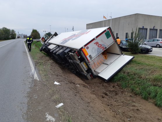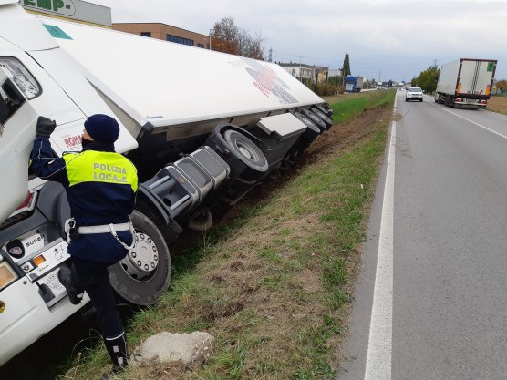 Alle 11:25 di stamattina, D.C., uomo 38enne di Piazzola sul Brenta, alla guida di autoarticolato Scania, stava percorrendo via Chizzalunga con direzione Sandrigo. Giunto all’altezza della zona industriale, per cause in corso di accertamento, ha perso il controllo del mezzo fuoriuscendo dalla sede stradale sul lato destro. Il recupero del carico di pellets (il rimorchio ne era pieno) è terminato alle 18 circa. Subito dopo sono iniziate le manovre per il recupero dell’autoarticolato, finito nella roggia, da parte di 2 autogru fatte confluire da Padova da parte della ditta proprietaria del mezzo. La strada rimarrà chiusa per circa 1 ora e mezza.