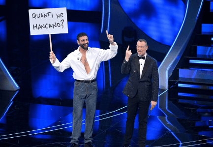 Sangiovanni: tutto è già nel titolo; “Finiscimi” non ha come sempre né capo né coda e il corsivo-bimbominkia la fa come sempre da padrone. Agghiacciante l’abito oversize, che tuttavia al momento furoreggia anche tra alcuni politici di vertice. Voto 1,5