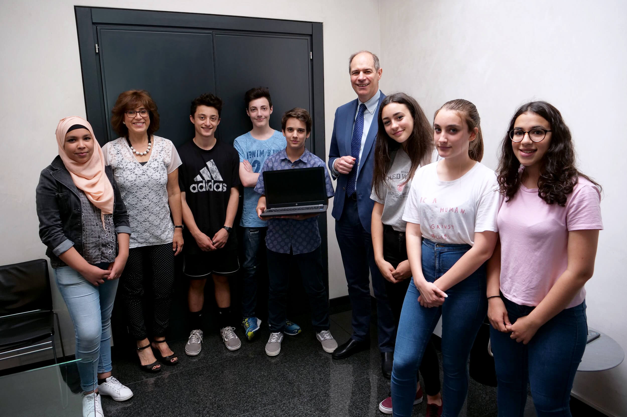 In foto: La rappresentanza della classe IIIC con il direttore Ernesto Boschiero e la professoressa Margherita Zacchello.
