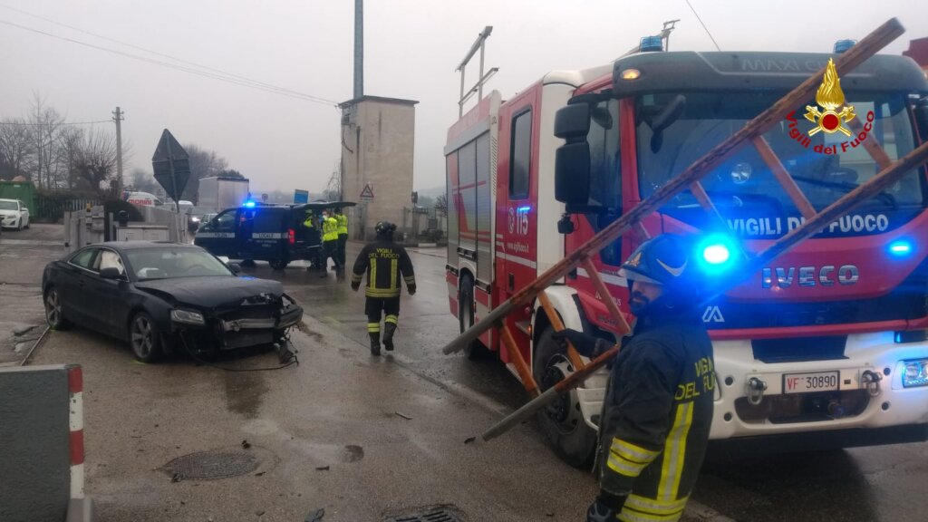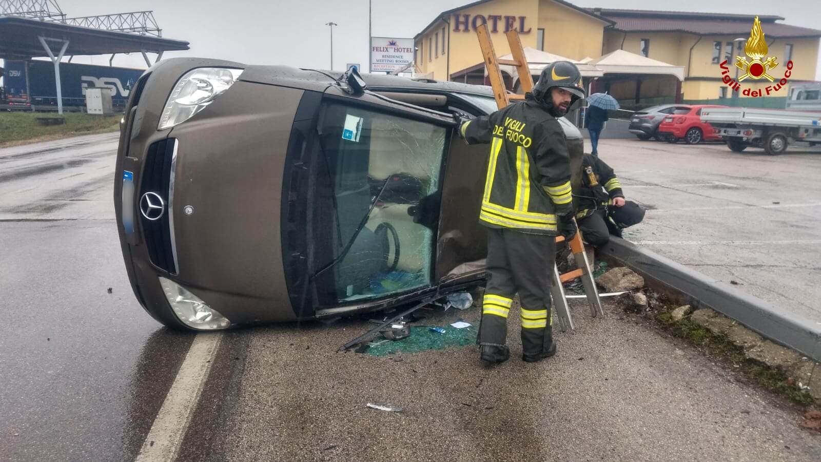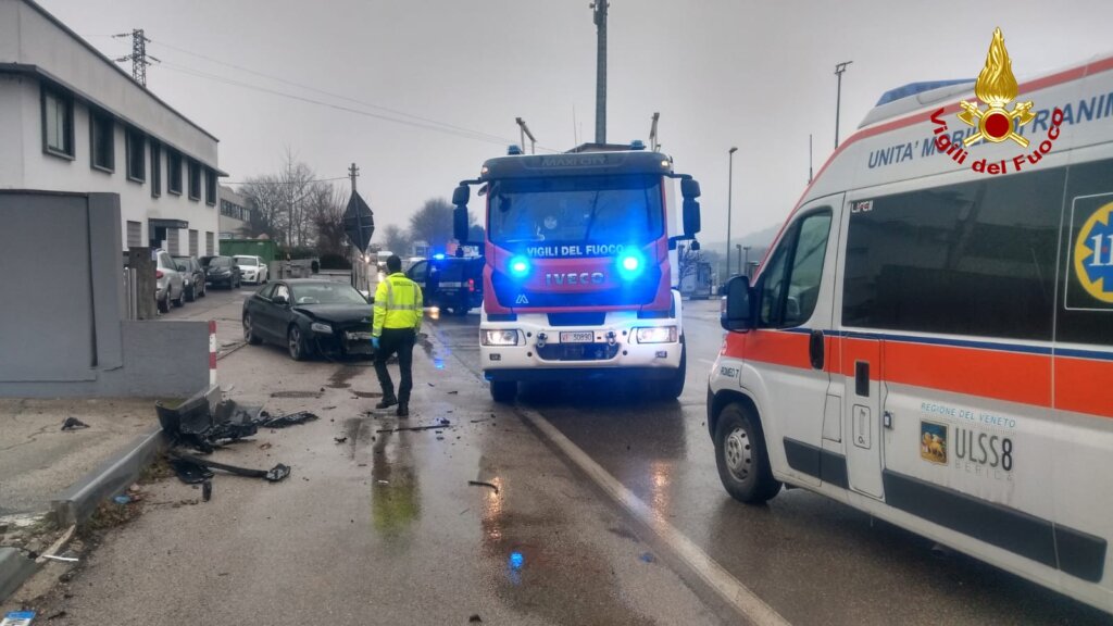 Alle ore 10:00, di mercoledì, i vigili del fuoco sono intervenuti in via del Melaro a Montecchio Maggiore nei pressi del casello autostradale per un incidente stradale tra due auto, di cui una finita rovesciata su un fianco: feriti i due conducenti. I pompieri arrivati da Vicenza, hanno messo in sicurezza i mezzi, mentre i due feriti sono stati presi in cura dal personale sanitario del Suem per essere trasferiti in ospedale. La polizia locale ha deviato il traffico ed eseguito i rilievi del sinistro. Le operazioni di soccorso dei vigili del fuoco sono terminate dopo circa un’ora.