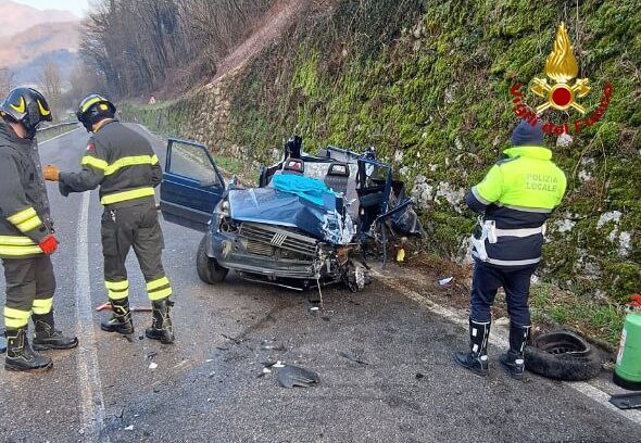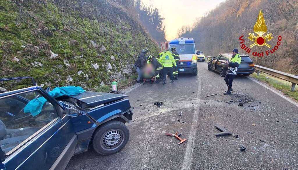 Drammatico scontro frontale questa mattina, giovedì 20 febbraio, alle ore 8, lungo la strada provinciale 43 Valchiampo, nei pressi di Molino di Altissimo, in via Mettifoghi, poco prima della località Disconzo/Lago Azzurro.