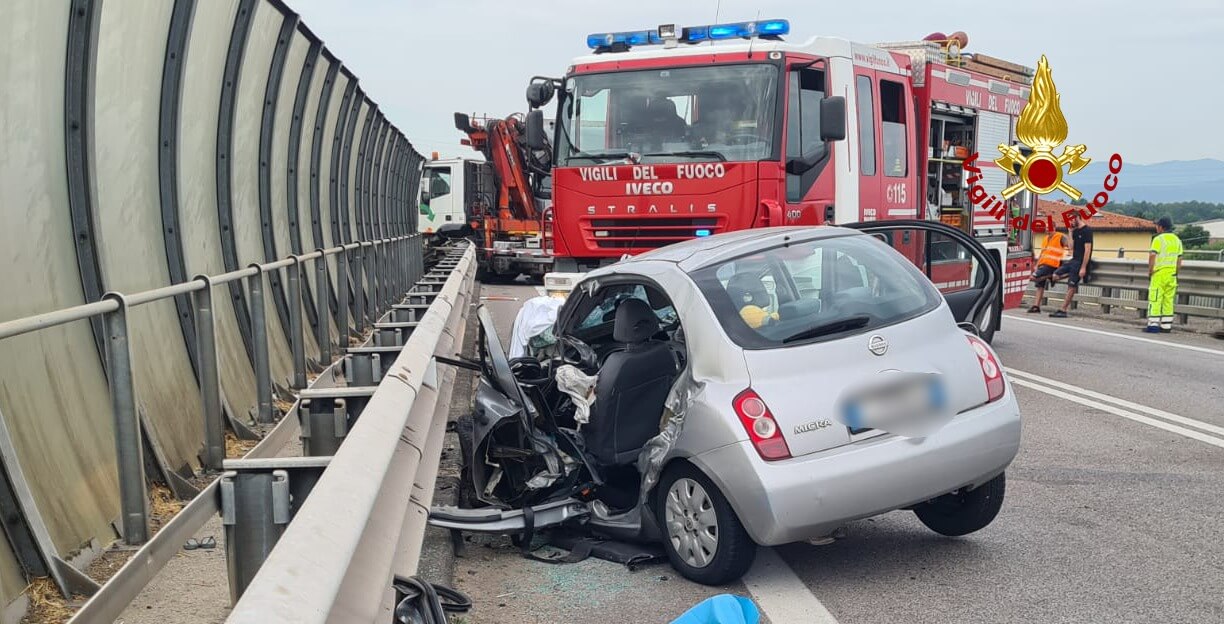 Alle 8:30 stamattina i vigili del fuoco sono intervenuti lungo la SS 53 Postumia nei pressi dello svincolo per l’A31 per un incidente frontale tra un’auto e un camion: deceduta una giovane ragazza, coinvolto parzialmente un terzo mezzo pesante. La vittima è la 21enne Chelsea Morsoletto, nata in Ghana e residente a Grantorto nel Padovano. I pompieri arrivati da Vicenza, hanno messo in sicurezza i mezzi ed estratto da una piccola utilitaria una ventenne, purtroppo nonostante i soccorsi il medico del Suem ha dovuto dichiarare la morte della giovane. Illeso l’autista del mezzo pesante. La strada durante i soccorsi è rimasta chiusa in entrambe le direzioni. I carabinieri insieme alla polizia locale hanno deviato il traffico ed eseguito i rilievi del sinistro. Le operazioni di soccorso dei vigili del fuoco sono terminate dopo circa ore.