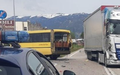 Schianto tra camion e scuolabus: tragedia sfiorata