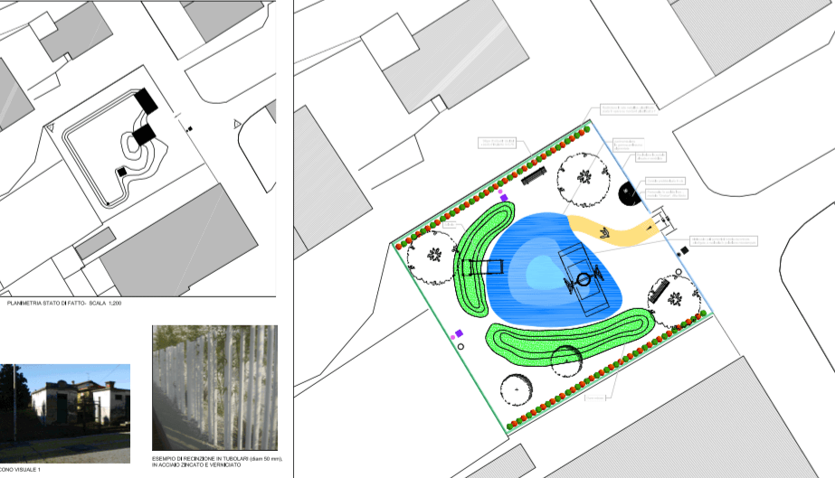 Saranno installati giochi per bambini, panchine, una fontanella, illuminazione pubblica e sfruttando il periodo autunnale più adatto, messe a dimora di alberature e siepi. Inoltre, per ricreare l’ondulazione del terreno dell’attuale serbatoio, saranno realizzate due dune utili anche per la salita sullo scivolo.