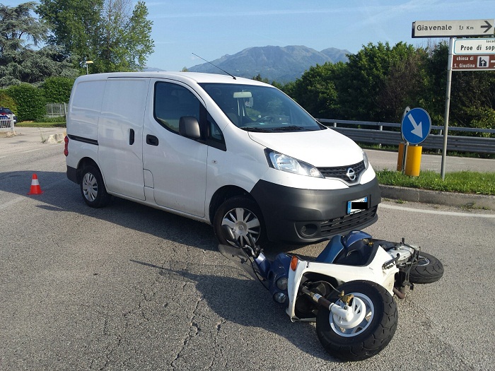 L’autocarro Nissan condotto da un 75enne di Schio stava percorrendo via Vicenza di Schio con direzione Malo. Giunto in prossimità dell’intersezione con via Proe di Sopra, iniziava la manovra di svolta verso sinistra per immettersi in quest’ultima via, senza però dare la precedenza al ciclomotore che sopraggiungeva dalla propria destra. Ad avere la peggio la conducente del ciclomotore, una 35enne di Malo, che veniva soccorsa con ambulanza per le cure del caso (escoriazioni varie).