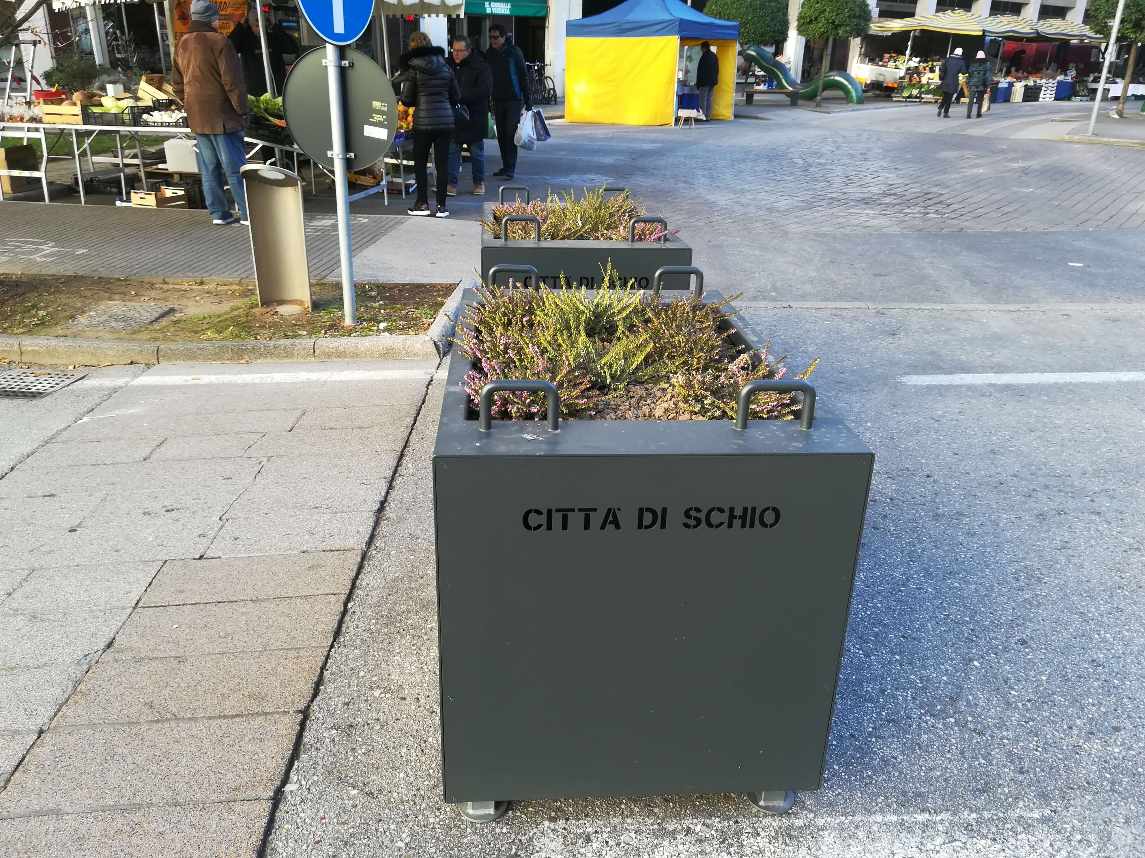 Le fioriere ( 30 in totale) sono state posizionate ai varchi delle aree del centro storico interessate dal mercato o dalle manifestazioni, in accordo e con la collaborazione del Consorzio di Polizia Locale Altovicentino. Vista la trasportabilità, queste potranno essere utilizzate anche in occasione di eventi straordinari in aree esterne al centro storico, ad esempio in occasione di concerti presso l’area spettacoli Campagnola. L’importo economico della realizzazione di tali fioriere è stato di complessivi 85.000 euro.