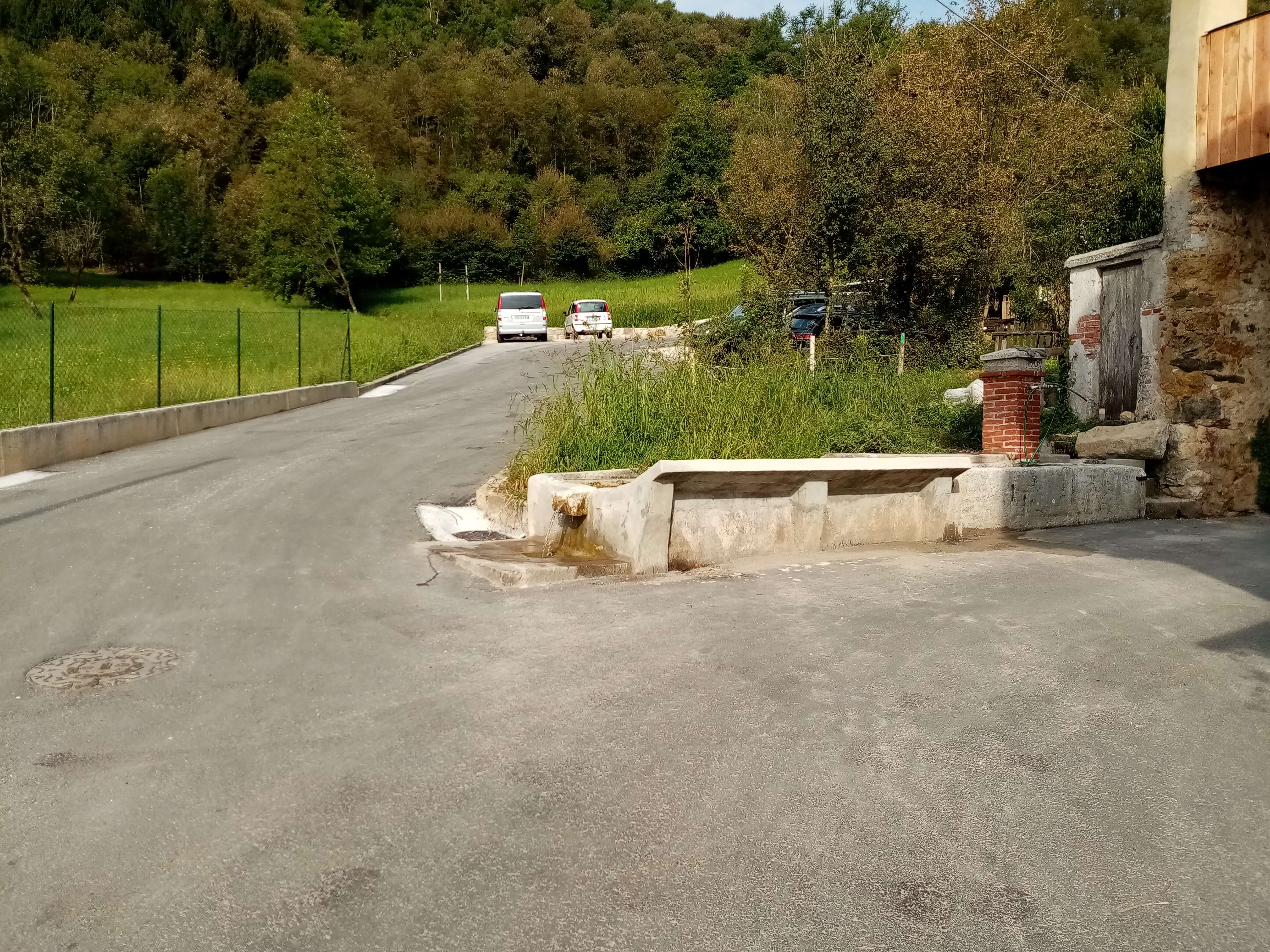 Sono stati realizzati 11 stalli di sosta per autoveicoli realizzati su fondo in stabilizzato misto calce, mentre il resto della viabilità è in asfalto, unitamente ad altre rifiniture connesse come la muratura in sasso a facciavista di contenimento dei terreni limitrofi a monte e la posa di tubazioni per il recupero delle acque meteoriche mediante caditoie e bocche di lupo. Sono stati eseguiti anche ulteriori lavori in corrispondenza della contrada quali la predisposizione di alcuni punti luce per garantire la sicurezza notturna del parcheggio, il rifacimento di superfici in asfalto funzionali al raccordo con la nuova strada di accesso al parcheggio, nonché la riqualificazione storica della fontana esistente. Considerando che l’intervento si trova in una contrada rurale, al posto di cordonate e pavimentazioni di separazione in cemento sono stati impiegati degli elementi lapidei in trachite recuperati da precedenti lavori, che ben si inseriscono nel contesto.