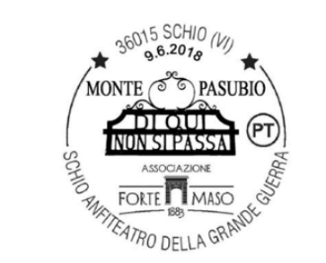 Poste Italiane metterà a disposizione dei collezionisti e degli appassionati un timbro filatelico in occasione del convegno “Schio anfiteatro della Grande Guerra”. L’annullo, realizzato su iniziativa del gruppo Forte Maso, potrà essere richiesto sabato 9 giugno dalle 15.30 alle 19.00: Poste Italiane allestirà un ufficio postale temporaneo a palazzo Fogazzaro, in via fratelli Pasini 44. E’ il quarto annullo filatelico richiesto dall’associazione “Forte Maso” durante i quattro anni del centenario della Grande Guerra: il primo intitolato al museo della Prima Armata, il secondo al monte Ciove; il terzo, nel 2017, al centenario della costruzione della strada delle 52 gallerie sul monte Pasubio. L’annullo disponibile sabato prossimo riporterà il celebre motto “Di qui non si passa”, con il logo dell’associazione Forte Maso.