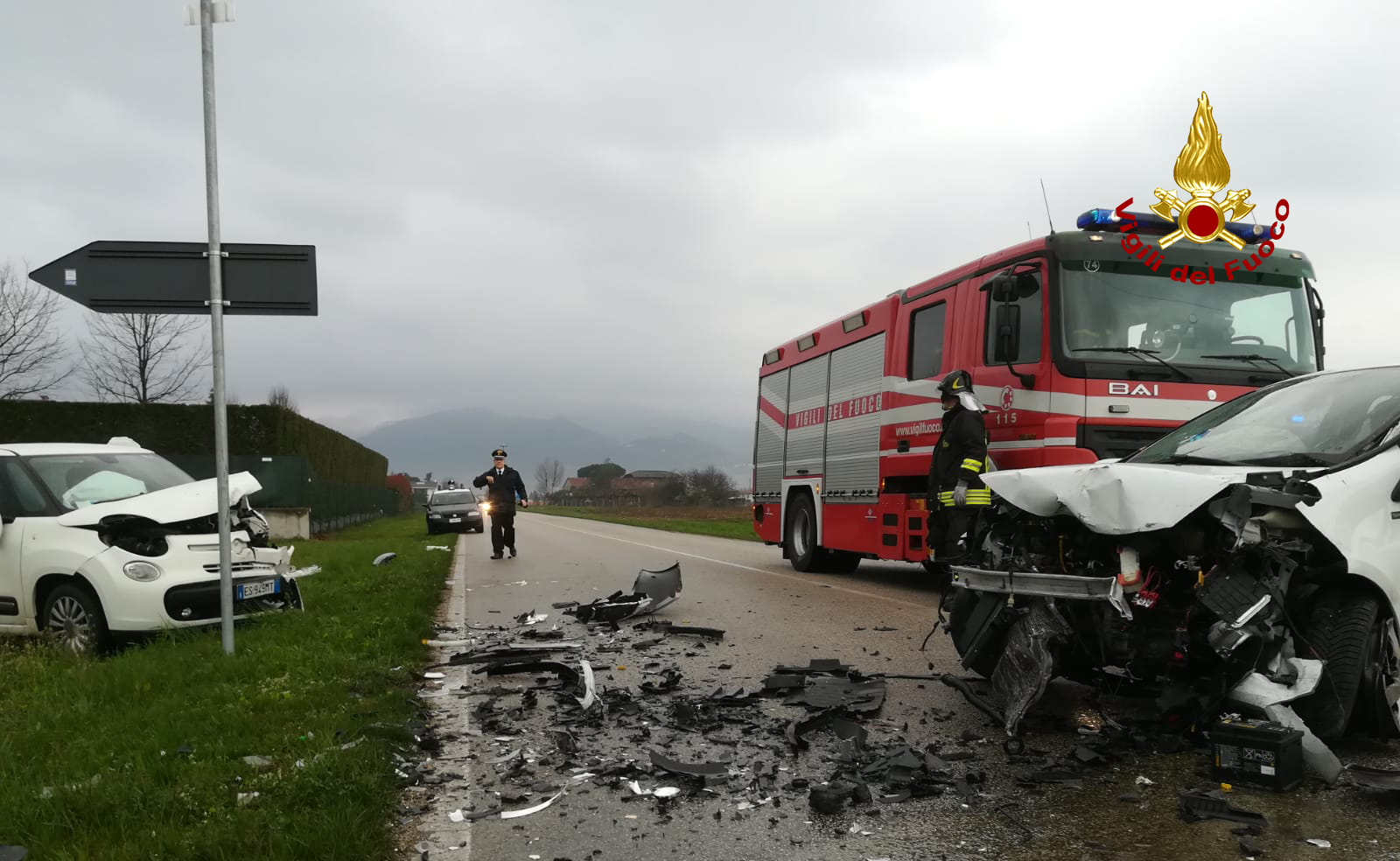 Alle 8.20, i vigili del fuoco sono intervenuti lungo la SP 114 in via Pista dei Veneti a Schio per uno scontro frontale tra due autovetture: feriti i due conducenti. I pompieri accorsi dal locale distaccamento hanno messo in sicurezza i mezzi e prestato i primi soccorsi ai due conducenti, prima dell’arrivo del Suem 118. Il giovane 21 enne conducente della Renault Clio e la donna 58 del posto sono stati stabilizzati dal personale sanitario e trasferiti con due ambulanze in ospedale. I carabinieri hanno deviato il traffico ed eseguito i rilievi dell’incidente per ricostruire la dinamica del sinistro. Le operazioni di soccorso dei vigili del fuoco sono terminate dopo circa un’ora.