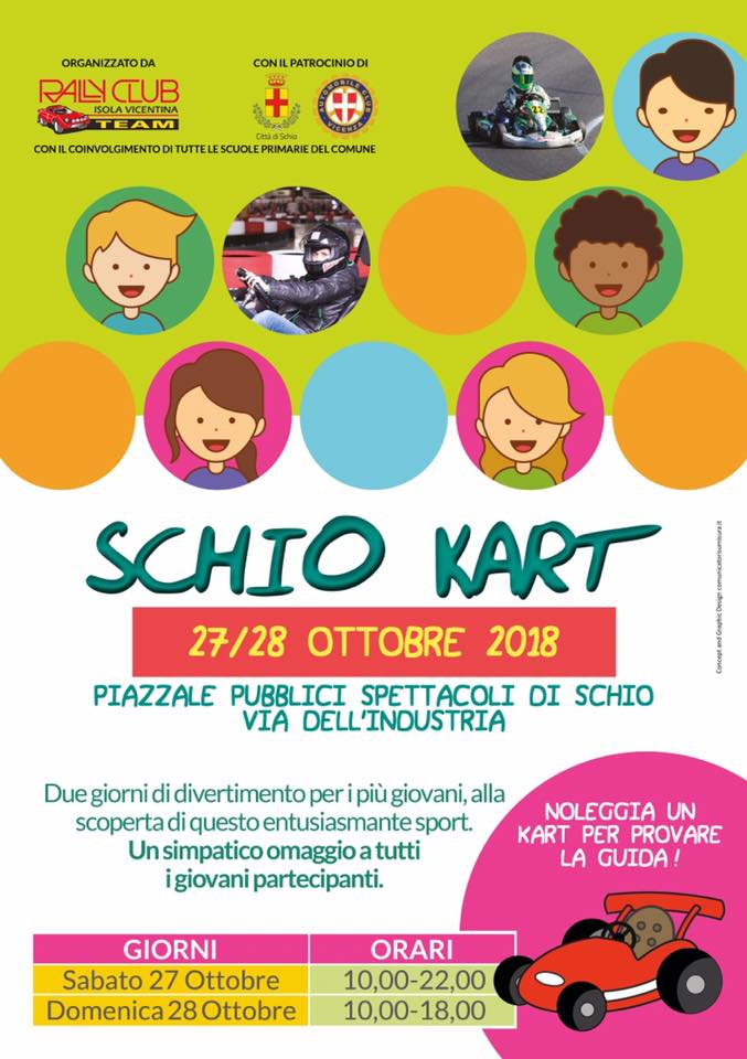 Il 27 e 28 ottobre prossimi si svolgerà a Schio nel Piazzale Pubblici Spettacoli, la prima edizione di Schio Kart, iniziativa organizzata dal Rally Club Isola Vicentina e rivolta principalmente ai bambini e ragazzi delle scuole primarie. Nella conferenza stampa in cui è stata presentata l’iniziativa, l’Assessore allo Sport Aldo Munarini si è detto soddisfatto di questa ennesima occasione sportiva per la città dando spazio a una disciplina da cui sono nati tanti campioni di Formula 1 e che comunque offre anche la possibilità di avviare progetti di educazione alla guida nelle scuole.“Il karting forma i ragazzi alla guida sicura” ha confermato Luigi Battistolli, Presidente ACI Vicenza da ottobre 2017 – uno fra i piloti di spicco del rally negli anni ’70-’80-’90 che continua tutt’ora a vincere nei rally delle autostoriche e con un palmares invidiabile. La manifestazione è infatti patrocinata anche dall’ACI, che riconosce il legame forte e vivace che Schio ha con il mondo del Rally
