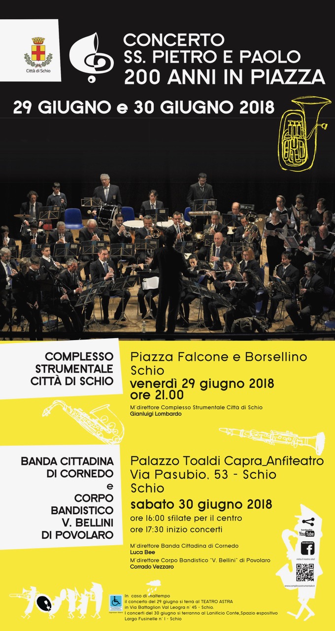 Arriva regalando un bel “ponte”, tanto per cominciare, la Festa del Patrono 2018 e con un carico di eventi e occasioni in parte ricorrenti e in parte unici, dispiegandosi per l’intero fine settimana e offrendo gusti per ogni palato. A proposito di gusto: il tema del concorso a tema per la 4^ edizione della Fabbrica del Giardino sarà proprio il Gourmet. Gli allestimenti si potranno ammirare nell’area della Fabbrica Alta. Ma facciamo un passo indietro e iniziamo all’alba del 29 giugno, San Pietro. Alle 8.00 infatti la piazza Rossi antistante il Duomo sveglierà la città con il canto Wachet auf, ruft uns sankt Peter ovvero, tradotto: Svejeve, San Piero ne ciama. Coincidenza vuole che siano anche 200 anni che esiste il Complesso strumentale Città di Schio che non mancherà di far sentire la sua “voce”. E poi Mostre di pittura, la 42^ Sareo in Arte, il mercatino dei lavori fatti a mano, gli aperitivi con concerto nel centro città e perfino un pic nic dedicato al santo cittadino. Per l’occasione i musei cittadini saranno aperti fino a sera, prima della conclusione con i fuochi d’artificio.