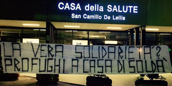 Forza Nuova di Vicenza ha rivendicato lo striscione appeso in nottata all’ex ospedale di Schio, al centro di polemiche perché individuato come luogo nel quale ospitare migranti. Duro il comunicato del gruppo politico vicentino contro il prefetto Eugenio Soldà, che, recita un comunicato firmato dal coordinatore provinciale, Daniele Beschin “in una delle sue sparate, ha dichiarato di voler collocare un numero non precisato di “profughi” clandestini. All’entrata dell’ex ospedale è stato appeso uno striscione che recitava “La vera solidarietà, i profughi a casa di Soldà”.