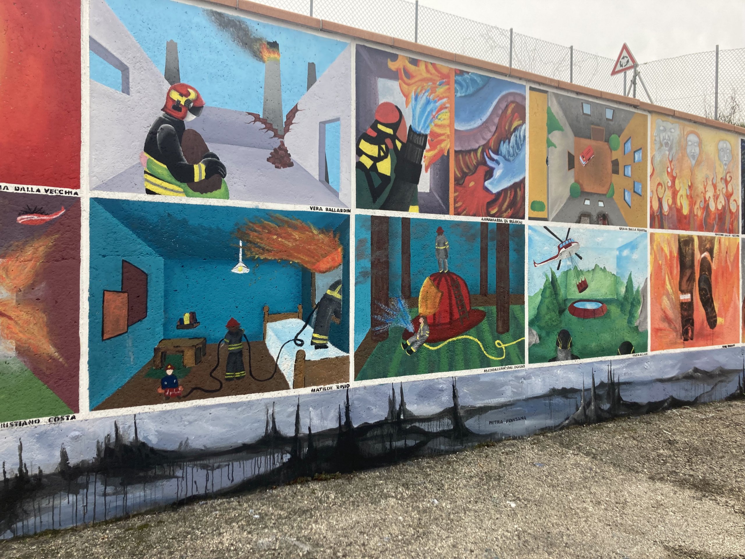 Un murale di 60 metri per quasi 70 disegni realizzati da un’ottantina di studenti e studentesse in circa 3 mesi di lavoro sul campo. Sono i numeri che raccontano la collaborazione tra il Liceo Artistico Martini e il distaccamento di Schio dei Vigili del Fuoco.