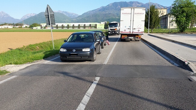 Incidente stamane poco prima delle 8.00 a Schio, lungo la Sp. 46 in località Ponte D’Oro. Un 21enne, residente a Schio, di origine bengalese, alla guida della sua Alfa Romeo 147 stava percorrendo la sp 46 in località Ponte D’oro con direzione di marcia verso San Vito di Leguzzano. Giunto in corrispondenza del parcheggio sterrato dell’Albergo/Ristorante “Ponte d’Oro” ha tamponato il veicolo che lo precedeva, una VolksWagen Golf, condotta da un trentenne di Torrebelvicino che aveva frenato e si era appena fermato poiché il veicolo che lo precedeva stava per effettuare la manovra di svolta a sinistra verso il parcheggio, nel quale era presente una pattuglia della Polizia Locale impegnata in controlli stradali, con l’intento della sua conducente di fare una segnalazione agli agenti.
